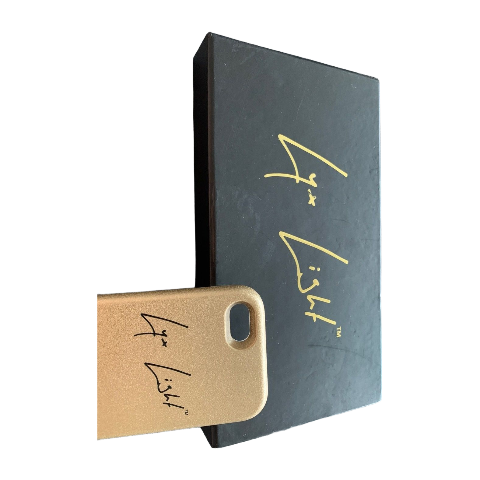 Lyx Lightin kultaiset selfiekuoret iPhone 5- malliin. Valon voimakkuutta saa säädettyä. Mukaan kotelo ja latausjohto. Toimiva tuote, katso viimeinen kuva.