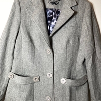 Päällys 60% villa, 25% polyesteri ja 15% viskoosi. Vuori satiinia.