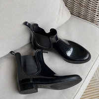 Kiiltävät mustat nilkkuri malliset kumisaappaat. Vähän käytetty.