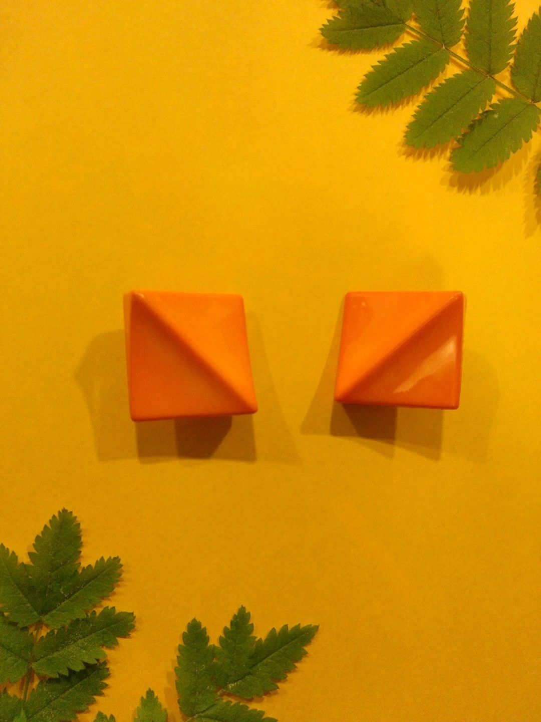 Oranssit vintage-korvikset, klipsikiinnitys. Leveys n. 2 cm.
