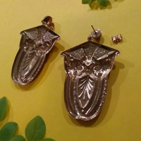 Ruusukullan väriset, näyttävät vintage-korvikset, tappikiinnitys. Kokonaispituus n. 6,5 cm.
