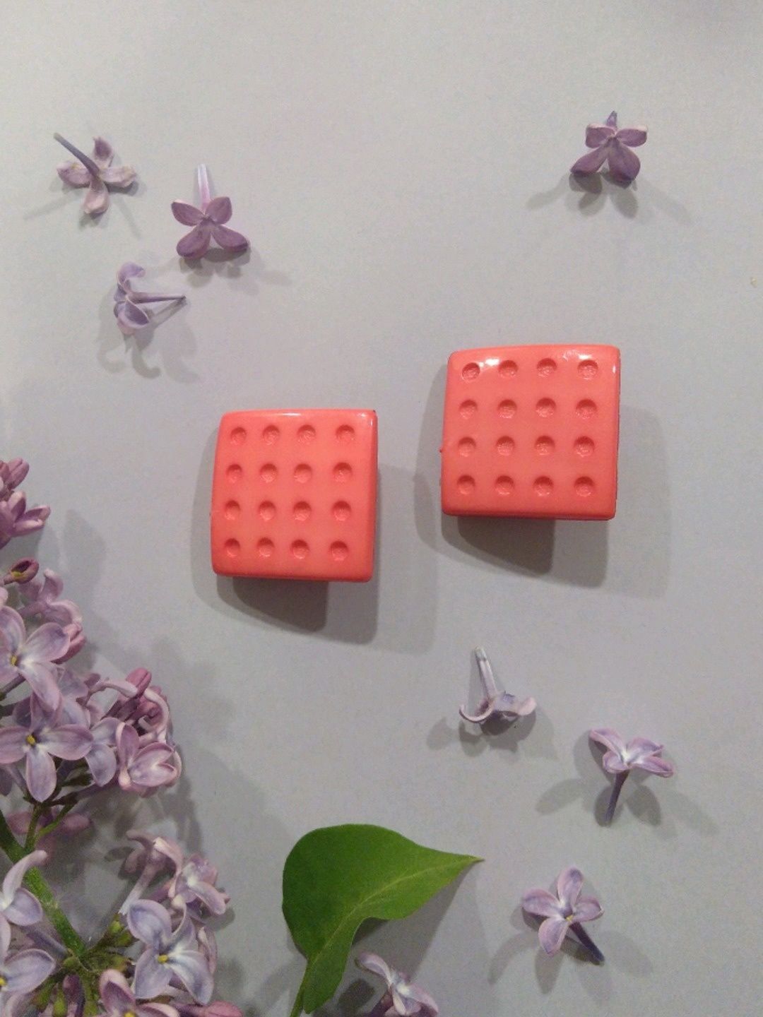 Vaaleanpunaiset vintage-korvakorut, klipsikiinnitys. Leveys n. 2,5 cm.