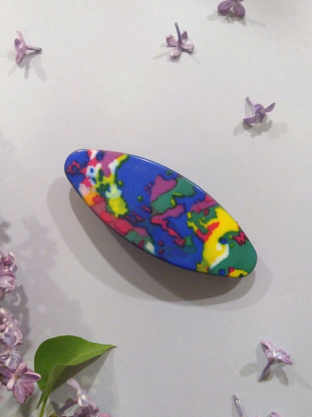 Värikäs vintage-hiussolki, leveys n. 9 cm.