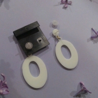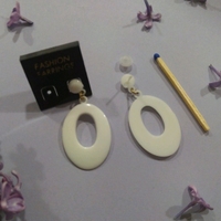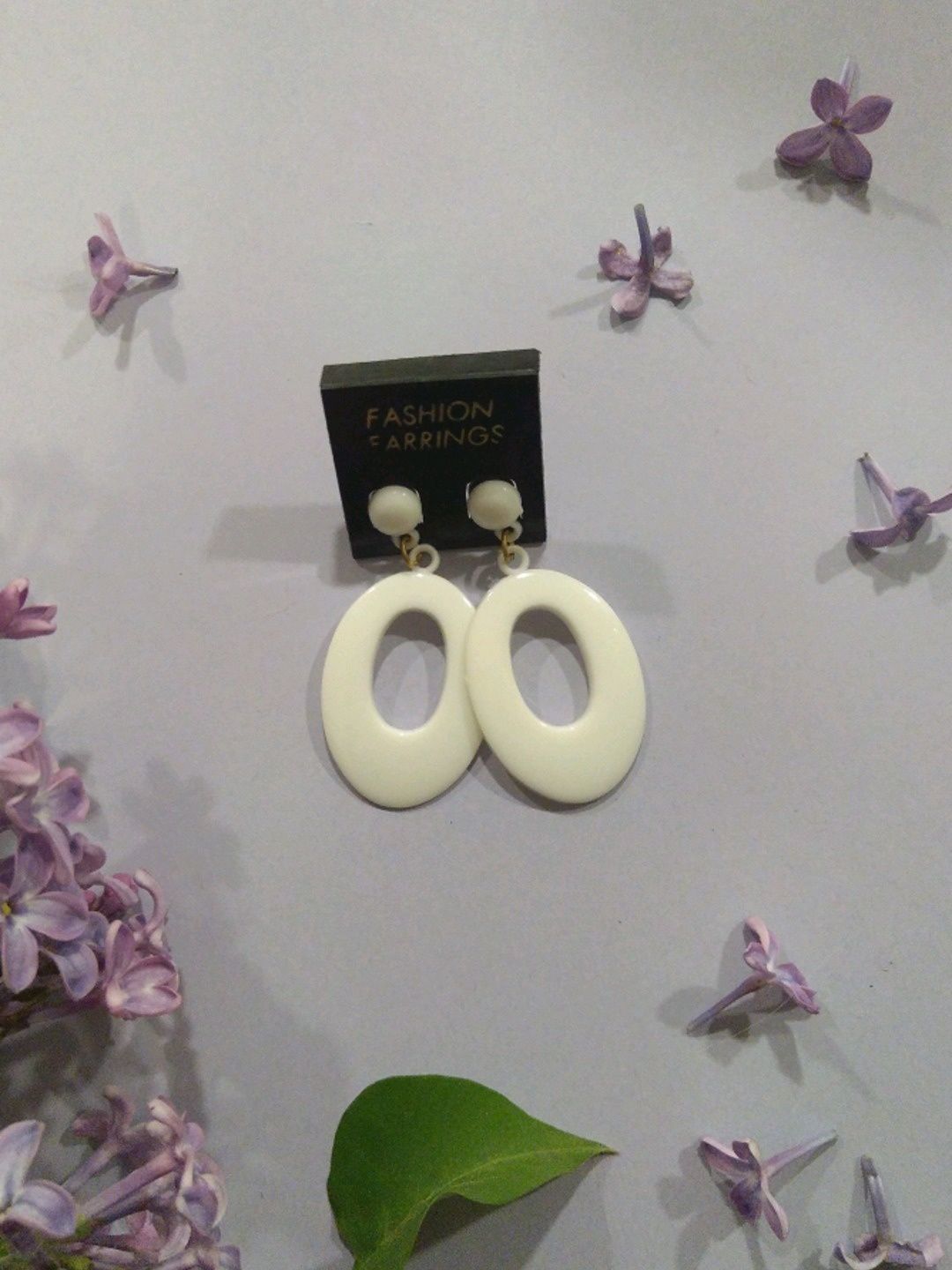 Valkoiset vintage-korvikset, tappikiinnitys. Pituus n. 4 cm, uudet. Huom! Tapit muovia, paksummat kuin metalliset tapit yleensä.