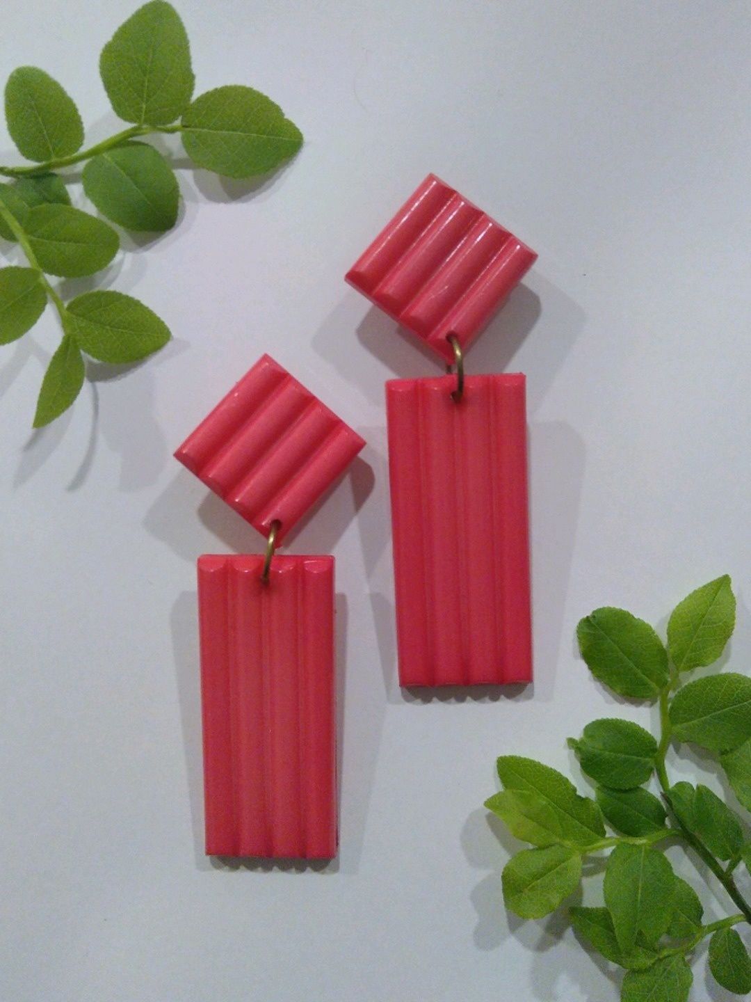 Pinkit näyttävät vintage-korvakorut, klipsikiinnitys. Korkeus n. 8 cm.