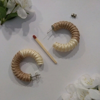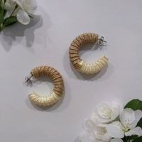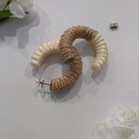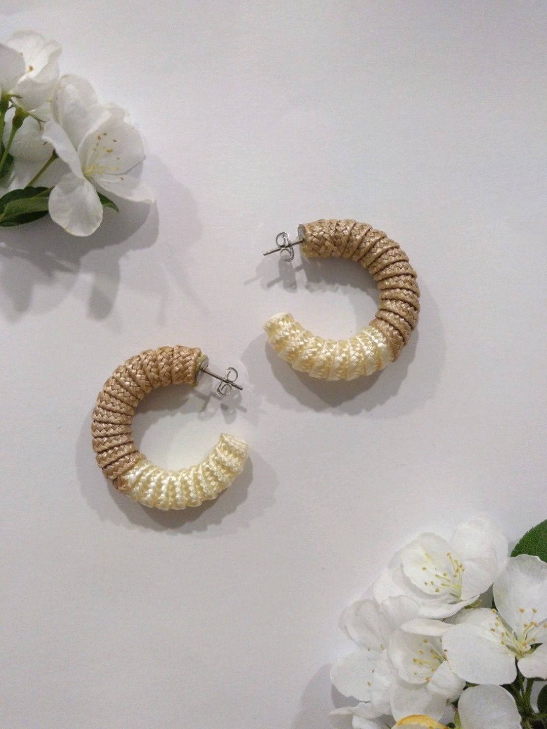 Kangaspäällysteiset, valko-ruskeat/beiget korvarenkaat, tappikiinnitys.