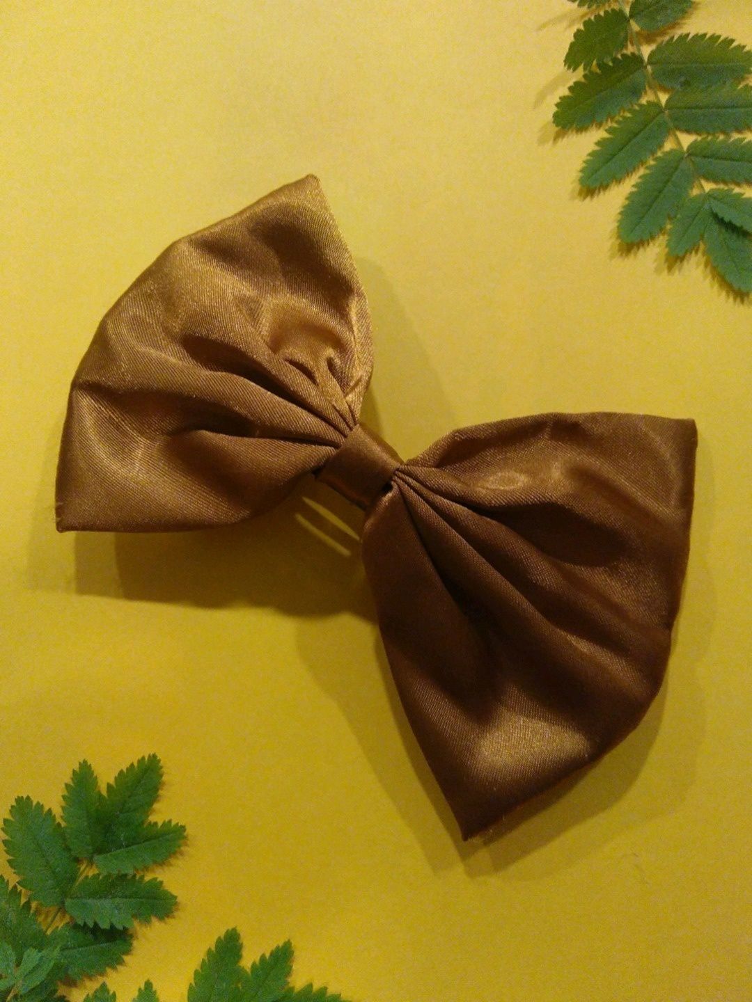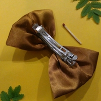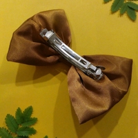 Vintage-hiussolki, jossa kiiltävä ruskea kangasrusetti. Uusi, ei ole ollut käytössä.