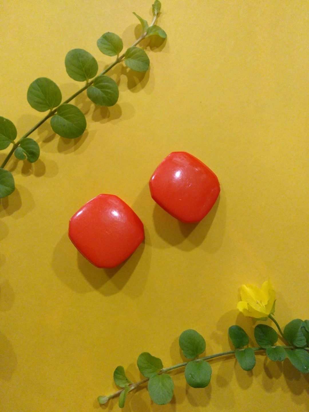 Punaiset vintage-korvikset, klipsikiinnitys.