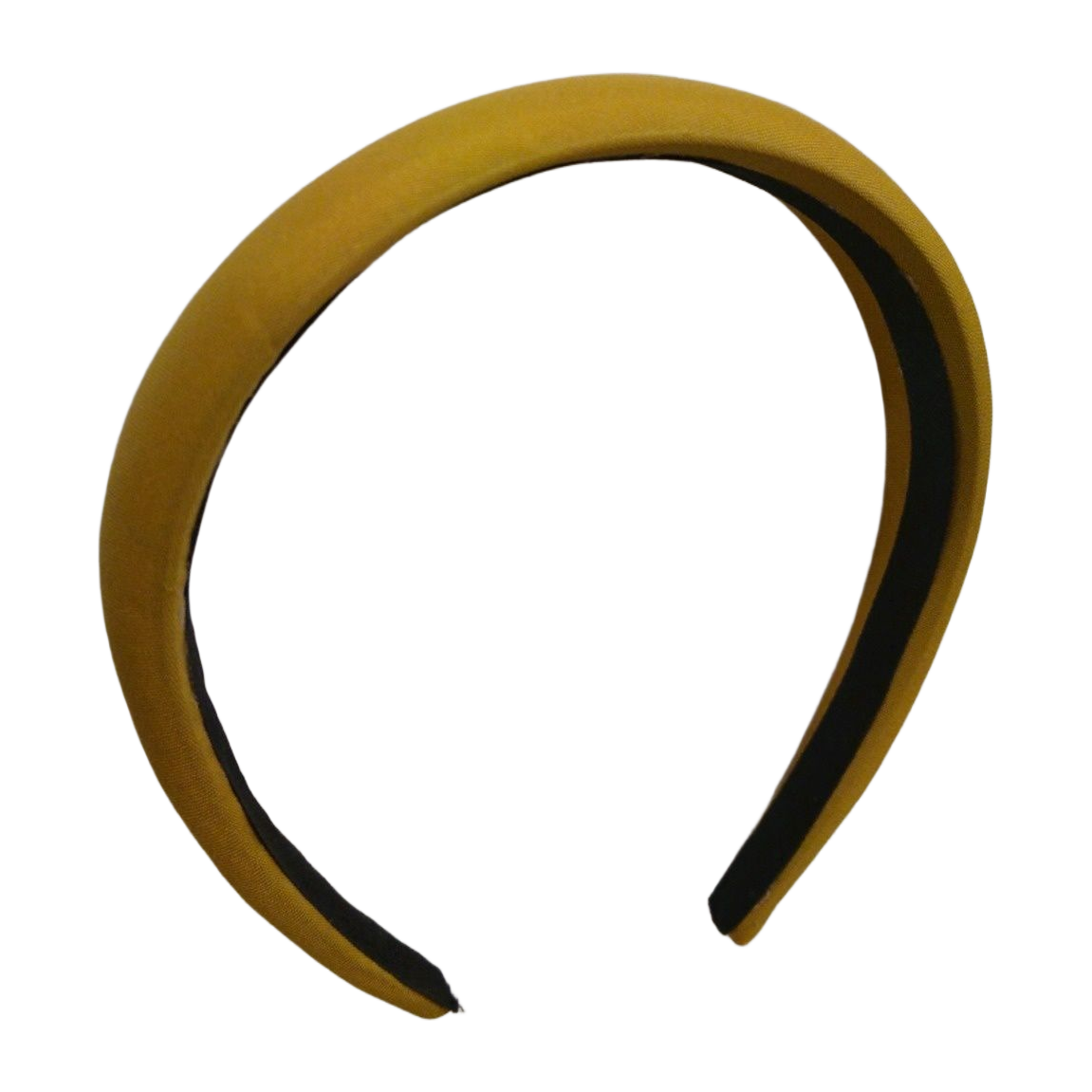 Sinapinkeltainen, kangaspäällysteinen vintage-hiuspanta.