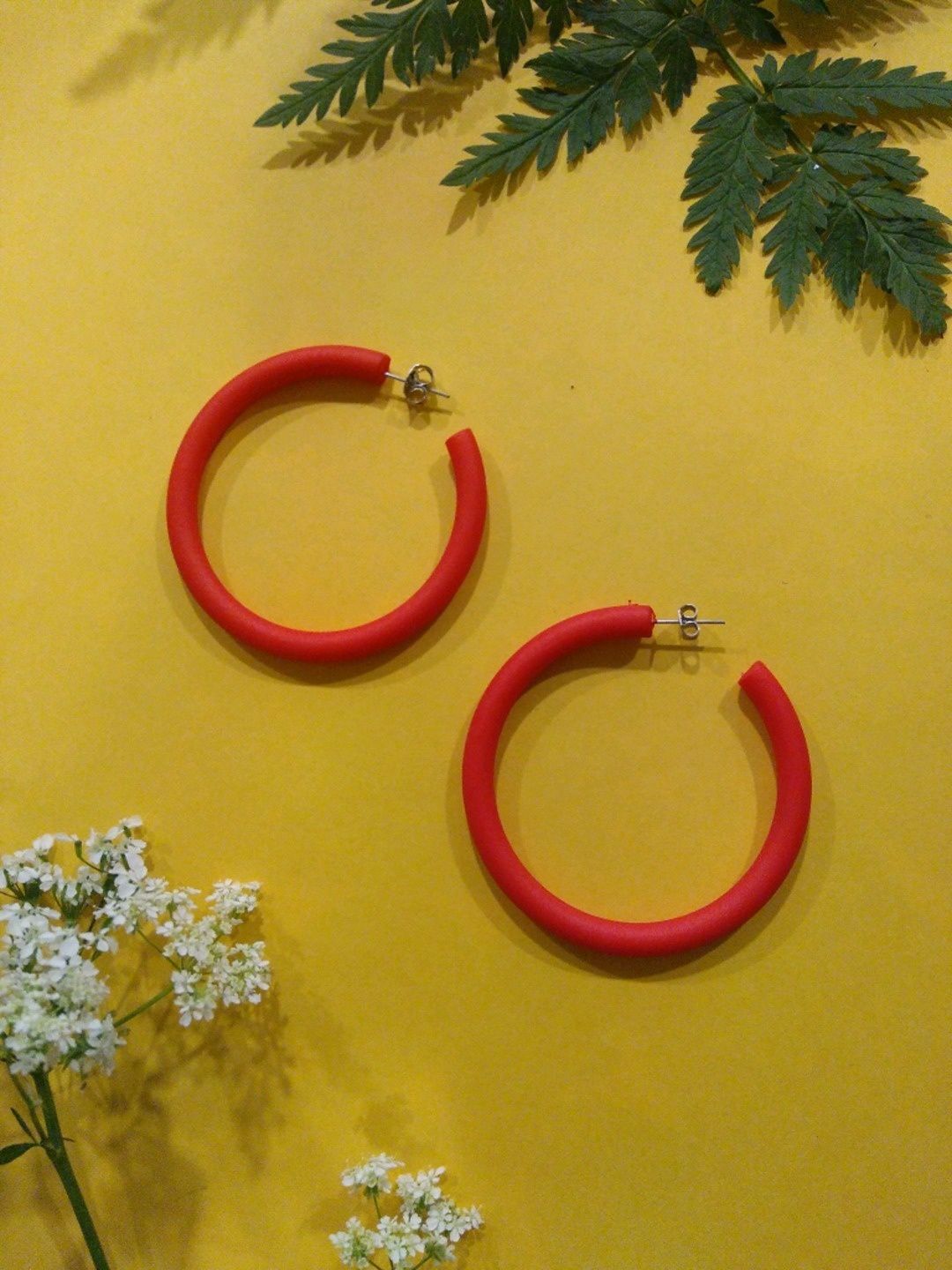 Punaiset näyttävät vintage-korvarenkaat, tappikiinnitys.