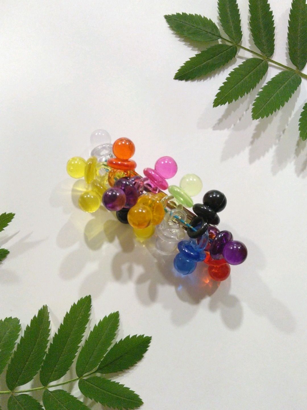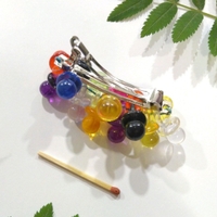 Värikäs vintage-hiussolki, jossa eri värisiä muovisia "tutteja" koristeena.