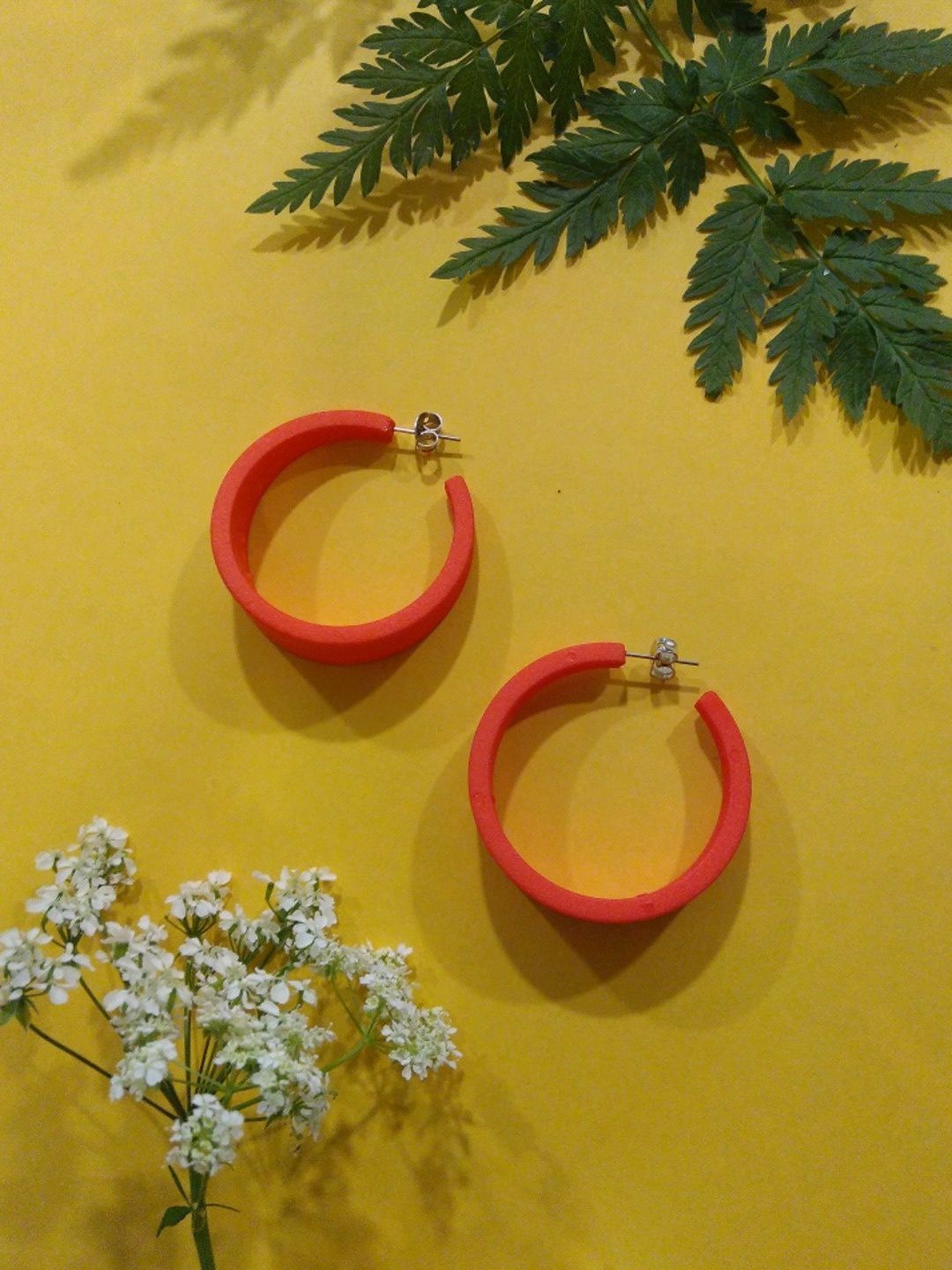 Punaiset vintage-korvarenkaat, tappikiinnitys.