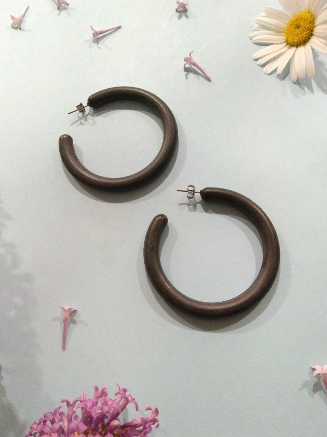 Harmaat vintage-korvikset, tappikiinnitys. Huom! Väri todellisuudessa hiukan vaaleampi harmaa, hankala saada kuvattua.