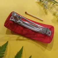 Punainen, kangaspäällysteinen vintage-hiussolki. Uusi, ei ole ollut käytössä.