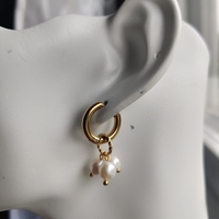 Käsintehdyt uniikit korvakorut osin kierrätysmateriaalista. Jokainen koru on yksilöllinen. Sirot yksinkertaiset korvakorut. Vaaleita makeanveden helmiä vanhasta helminauhasta. Saranarenkaat ruostumatonta terästä. Renkaiden halkaisija noin 1,5 cm. Korujen pituus noin 3 cm. Kierrätysmuovinen rasia kaupan päälle. Kaulakoru myynnissä erikseen. #handmade #earrings #upcycle #pearl