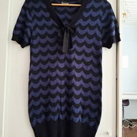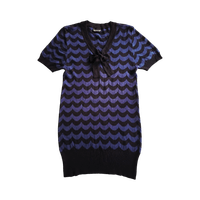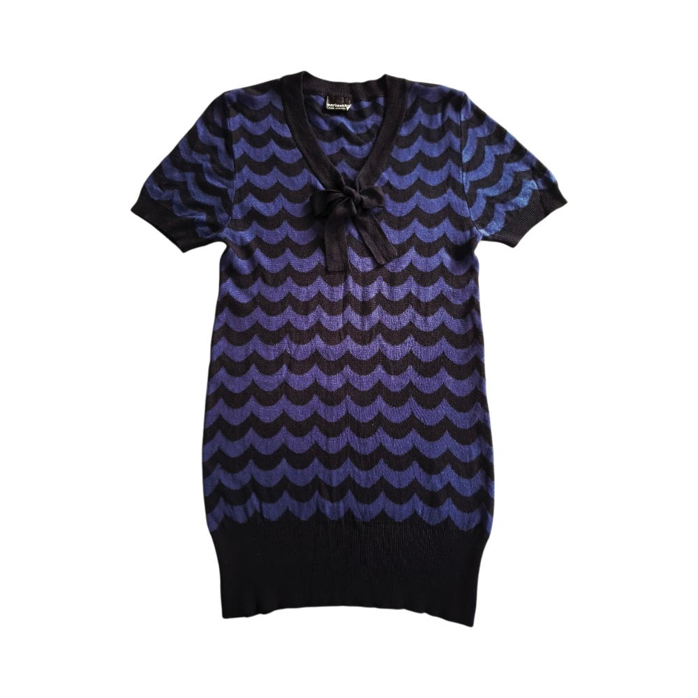 Short-sleeve silk blend knit tunic / mini dress with bow neckline detail.