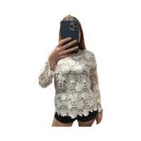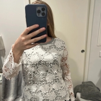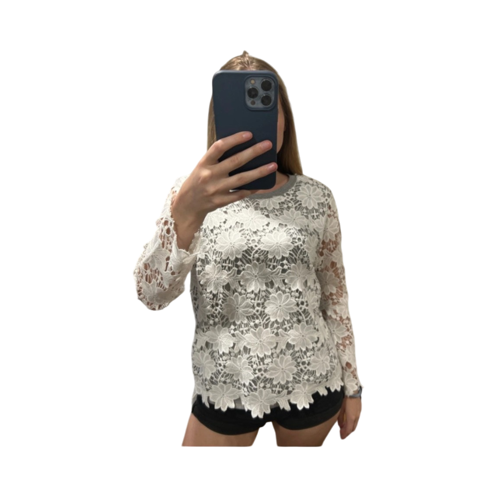 Pitkähihaisen kukkapitseinen läpikuultava paita.
