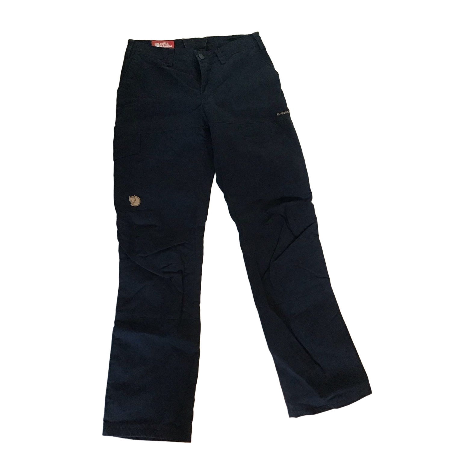 Fjällräven Karla Winter Trousers kokoa 34. Jokin vuori sisällä, ei kuitenkaan paukkupakkasille. Käytetyt, silti siistissä kunnossa. Lahkeet käännetty, vähän sauma vinossa mutta ei haittaa menoa. Haara-lahje mitta n. 74cm. Värinä tumman sininen ja G-1000 kangasta. Kokolapussa 34 ja vastaa mielestäni kokoaan.