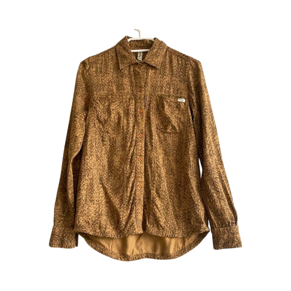 Stylish and comfortable RVCA long-sleeve top from the iconic surf & skate lifestyle brand. Features a warm golden-brown animal print pattern, making it both eye-catching and easy to style for everyday wear. The fabric is lightweight, soft, and drapes nicely (material tag removed).