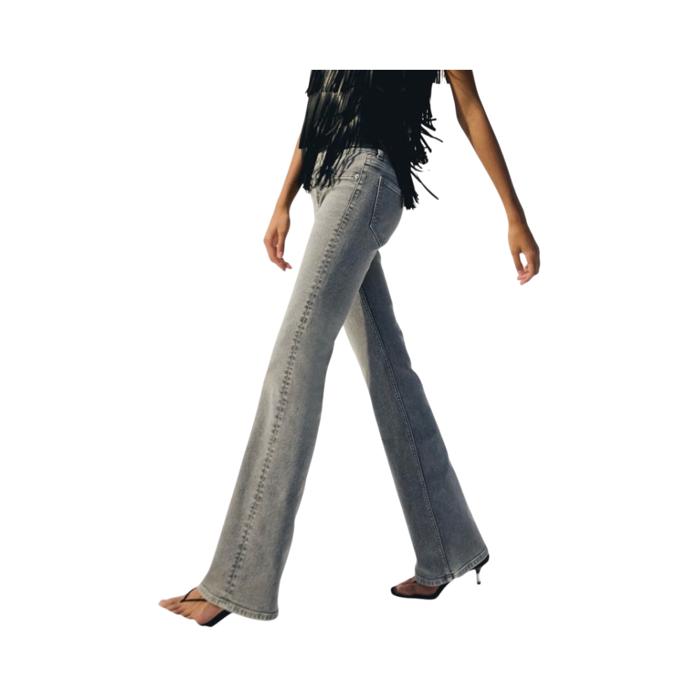 Matalavyötäröiset farkut, leveä lahje, käytetty hyväkuntoinen.