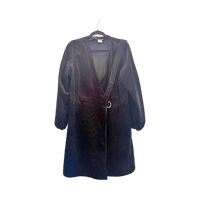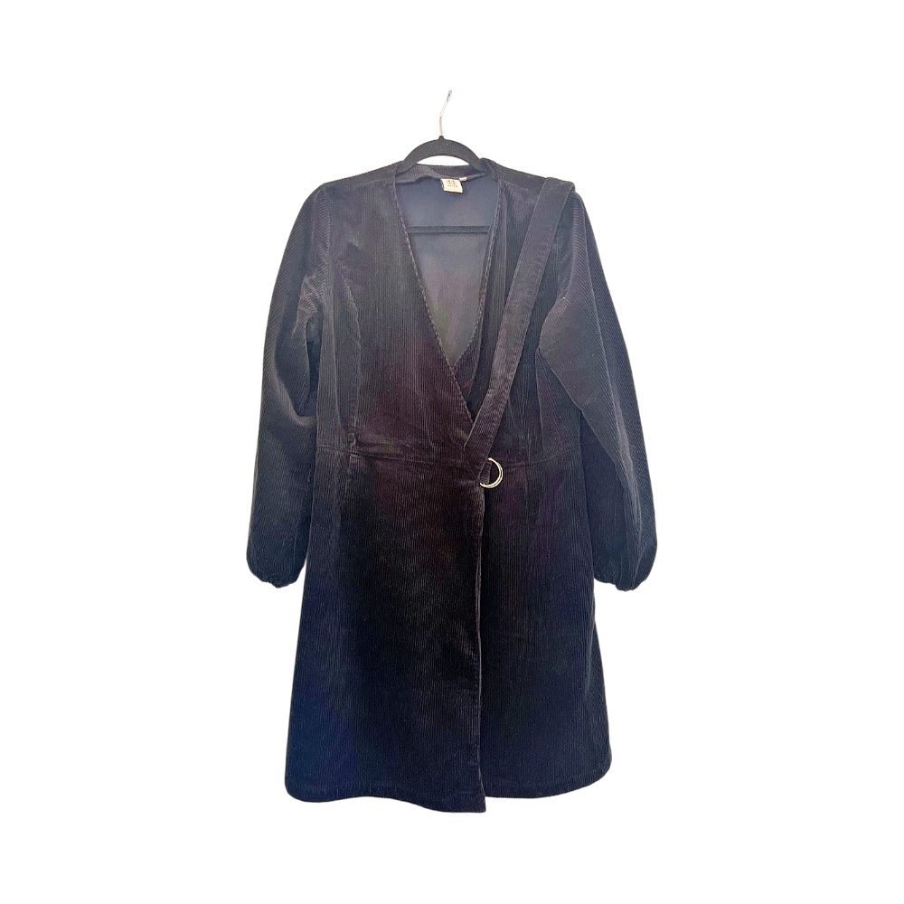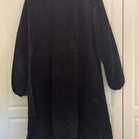 Naisten musta samettinen mekko vyöllä, pitkähihaiset hihat.