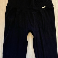 Mustat Aim’n -merkkiset ribbitrikoot korkealla vyötäröllä. Malli: Ribbed seamless tights.