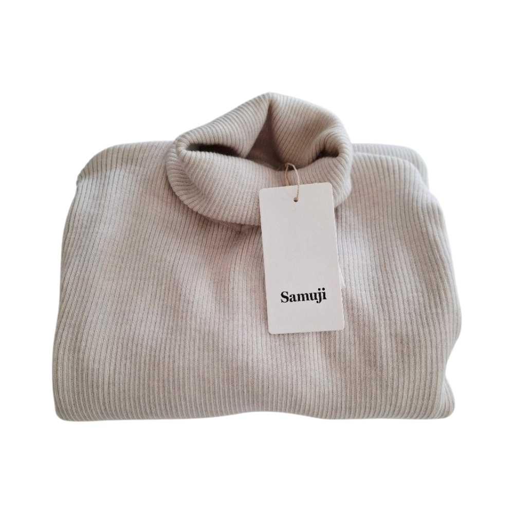 Slim-fit long-sleeve ribbed turtleneck, lightweight, non-itchy and cozy.