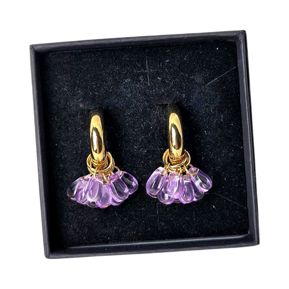 Käsintehdyt lasihelmistä. Renkaat 18k kullattua terästä.
