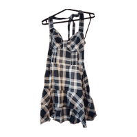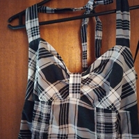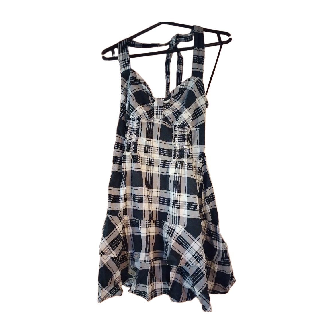 Naisten mustavalkoinen ruudullinen mekko, halterneck malli
