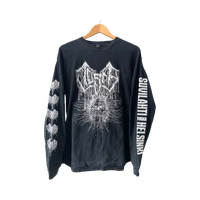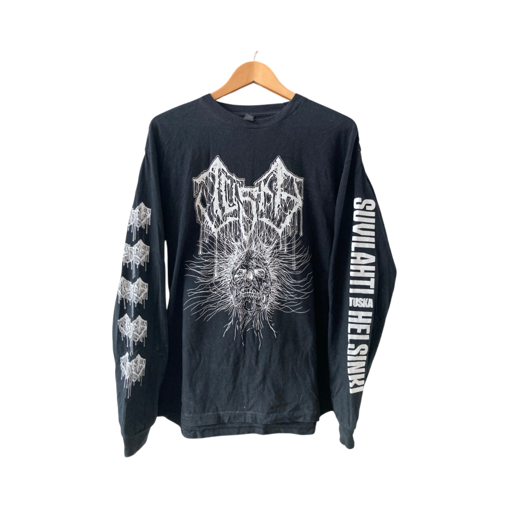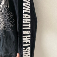 Merkkari merch merchandise virallinen official bändipaita bändipaitoja bändi teeppari teepaita bandshirt band tee music musiikki Y2K drip swag cool af fani musa artisti tuska open air heavy metal festivaali fest pitkähihainen keikkapaita kiertuepaita keräily
