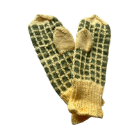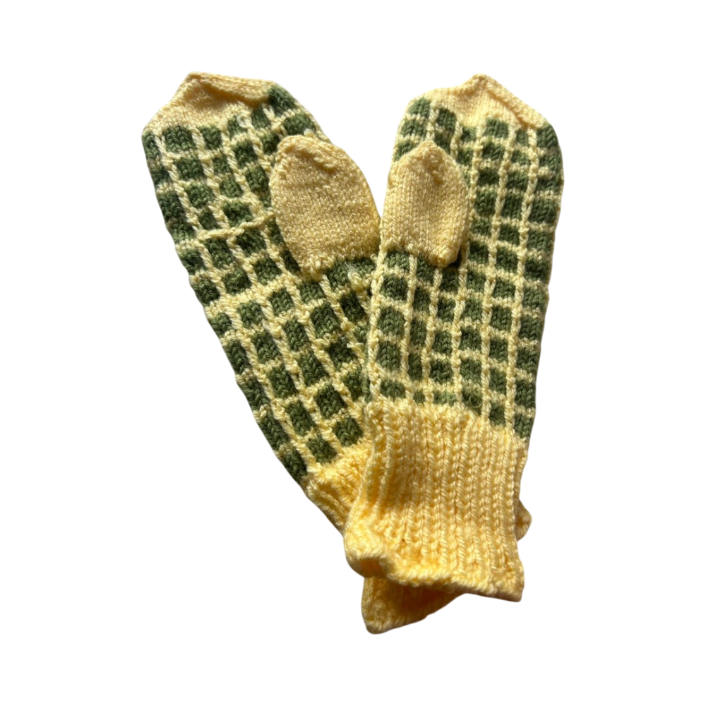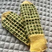 Käsinneulotut raidalliset villalapaset, pehmeät ja lämpimät.