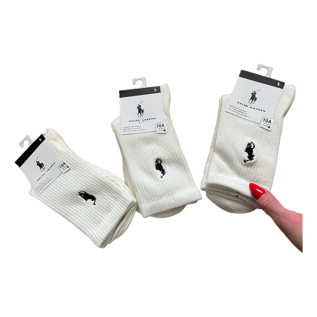 Set of three pairs of white ribbed cotton socks with black logo embroidery. Brand new with tags, 36-42ismera,ilgos