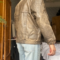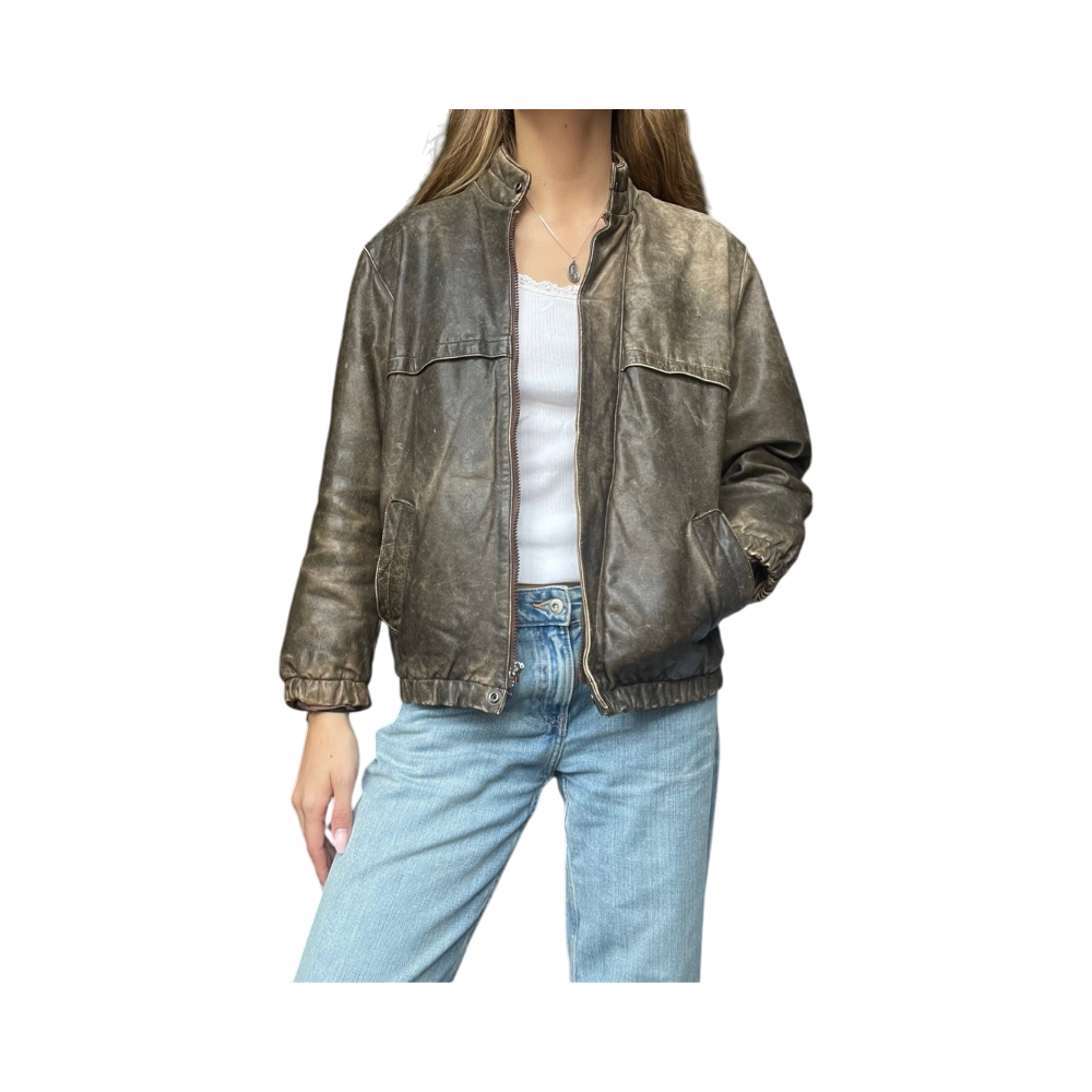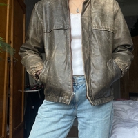 Ruskea nahkatakki, ”kulutettu” väri. Ripustuslenkki rikki. Vintage washed jacket, broken loop