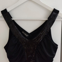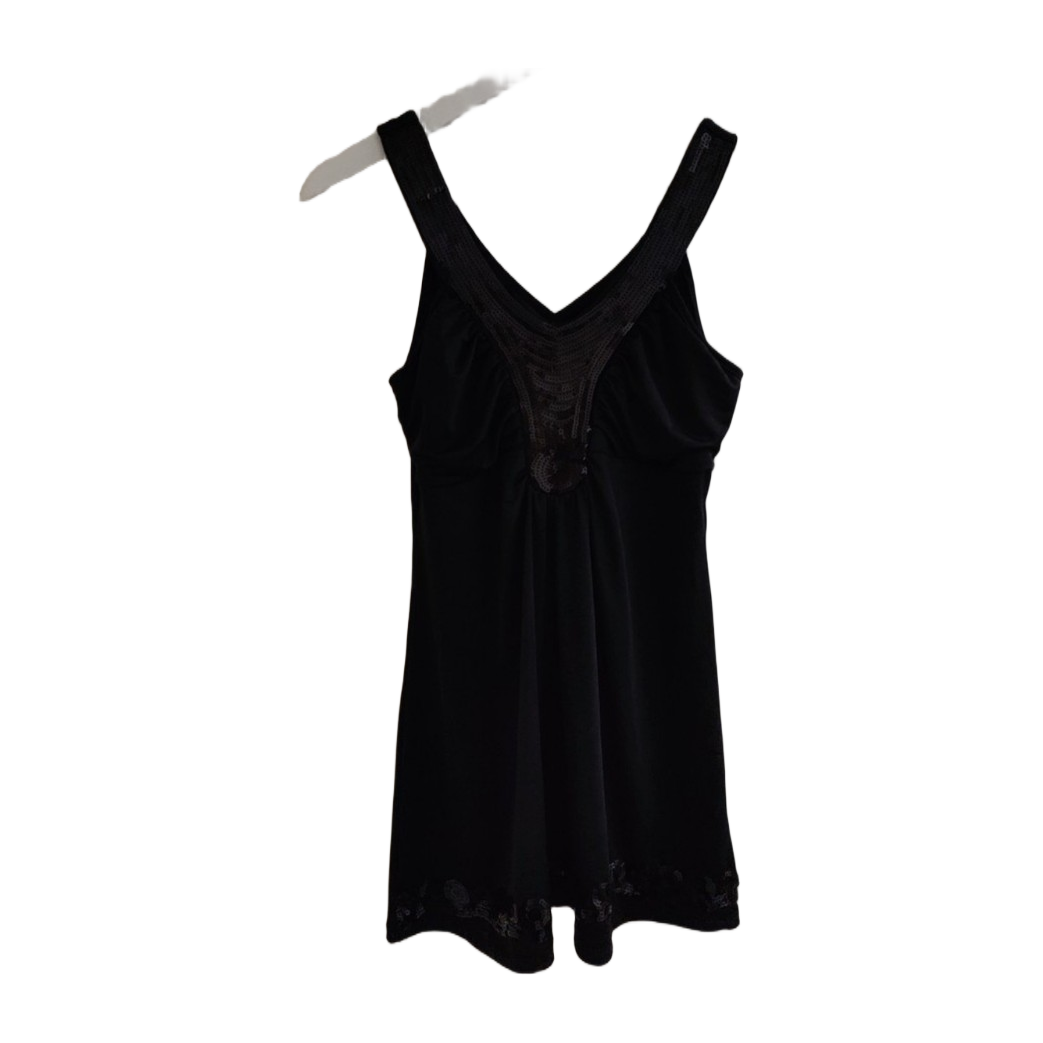 Uudenveroinen tyylikäs siisti pitkä toppi/mekko mustilla paljeteilla, koko S. Ihanan pehmeästi laskeutuvaa materiaalia.