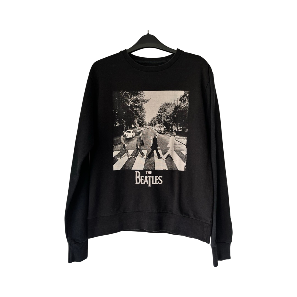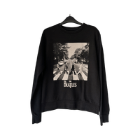 Musta The Beatles collegepaita. Kokomerkintä M, mutta vastaa S kokoa