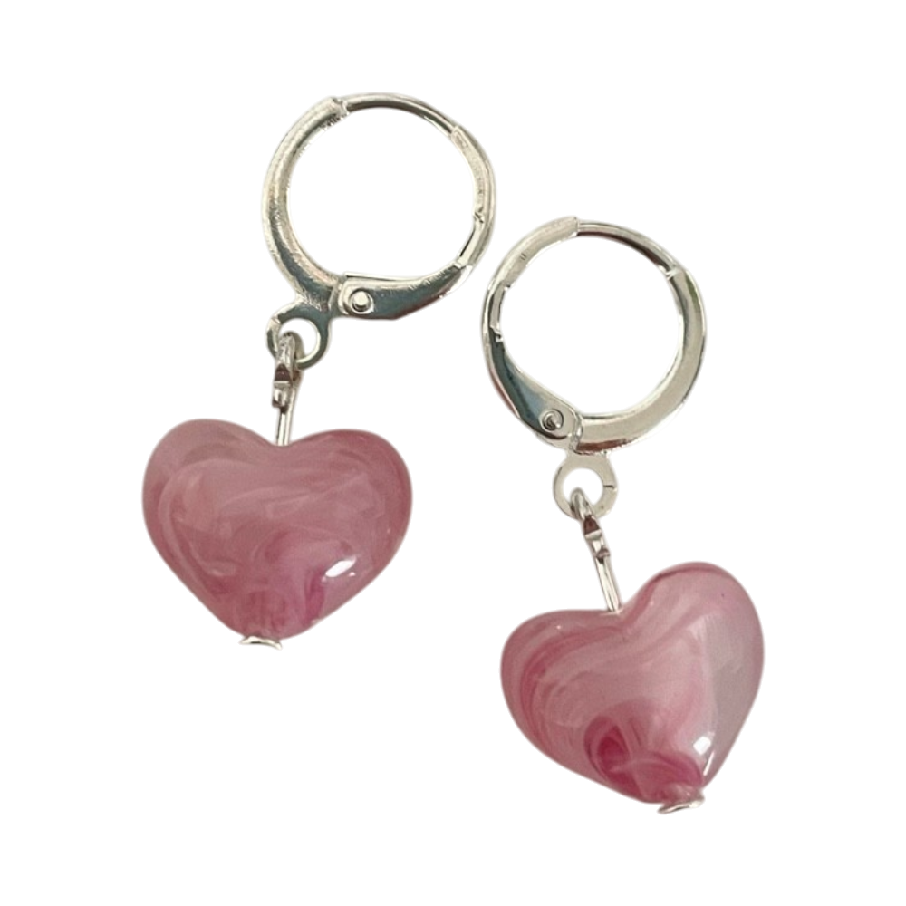 Korvakorut marmorikuvioisilla akryylisydämillä💗