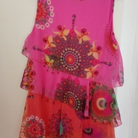Naisten kerroksellinen toppi kirkkailla väreillä ja kuvioilla.