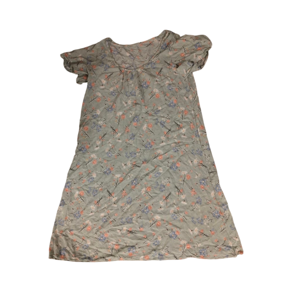 Kevyt, kukkakuvioinen kesämekko lyhyillä hihoilla.