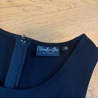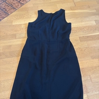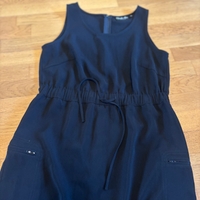 siisti musta mekko, jossa vetoketju takana ja vetoketjulliset taskut sivuilla.