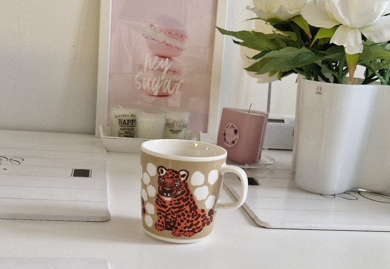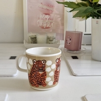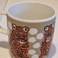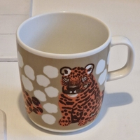 Marimekko Oiva Kaksoset muki 4dl. Käytetty jonkin verran. Sisäpuolella pohjassa kuvan mukainen jälki.
