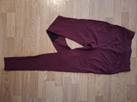 Stretchy burgundy leggings with black mesh panels, comfortable fit. Pockets. Waist 66cm, inseam 68cm.