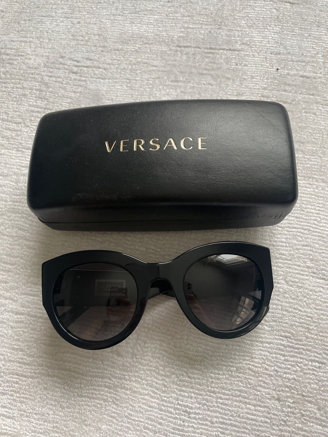 Versacen aurinkolasit polarisoiduilla linsseillä. Linsseissä ei naarmuja. Mukana laatikko, aurinkolasien kotelo, linssien putsaus liina sun muut lappuset jotka tullu ostaessa mukana.