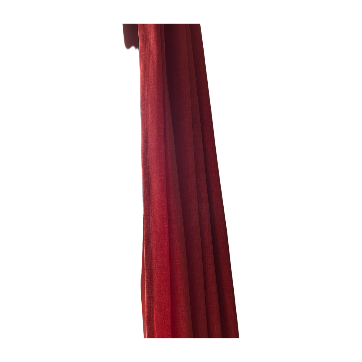 Kauniit, laadukkaat punaiset verhot. Ommel on tiheää, mutta kangas ei kuitenkaan ole pimentävä. Verhoja 2 kpl
