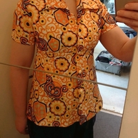 Napakka istuvuus 38 koolle, pienirintaiselle. Napit edessä, ylin nappi kadonnut, mikä ei haittaa, kaulus istuu paremmin ilman sitä.