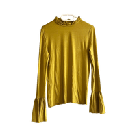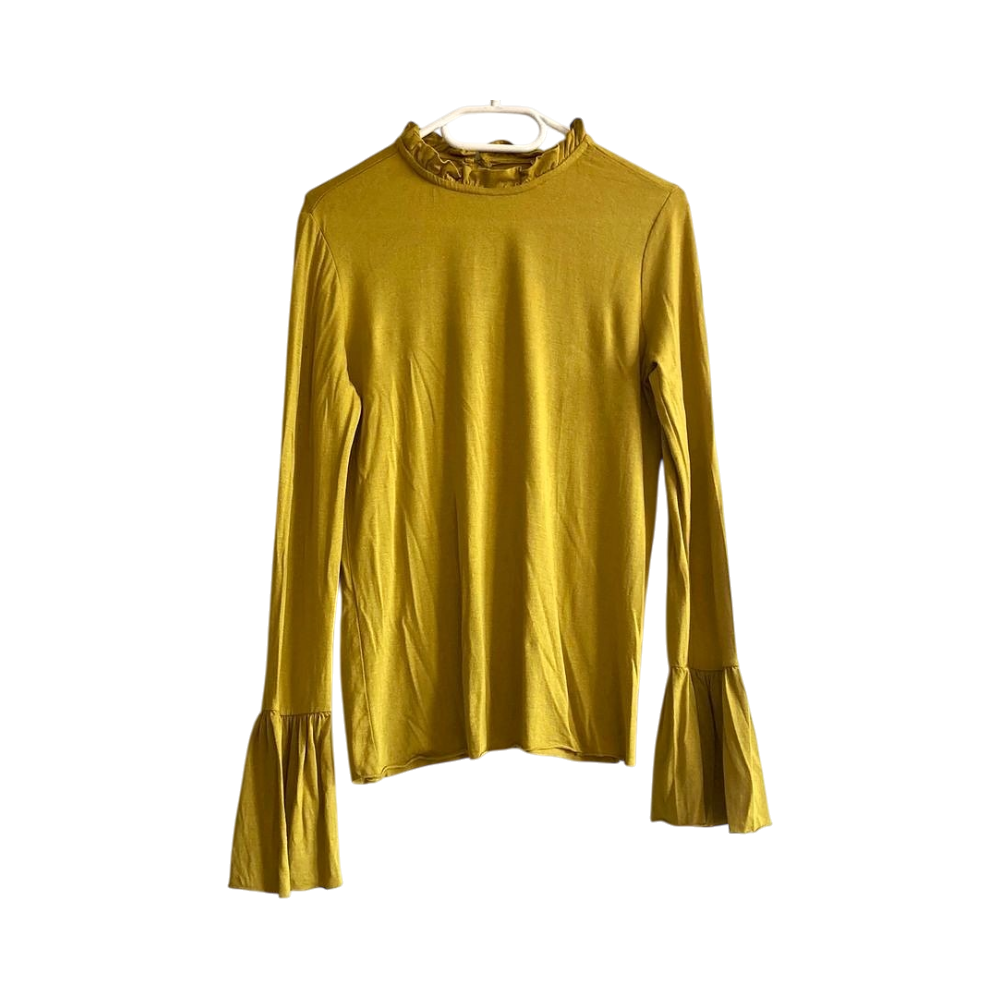 Koton mustard yellow ruffle neck blouse S – bell sleeve, fairy grunge
