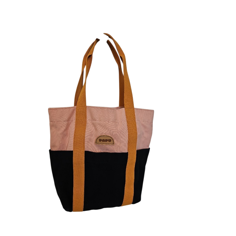 Tilava kaksivärinen Papun canvas-tote, käytetty mutta hyväkuntoinen