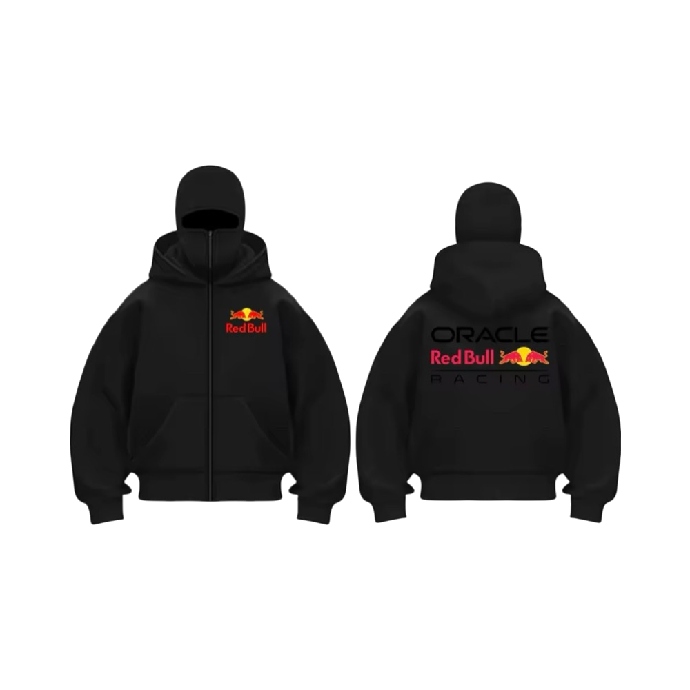 Oraclen / Red Bull Racing -logoilla varustettu musta huppari.