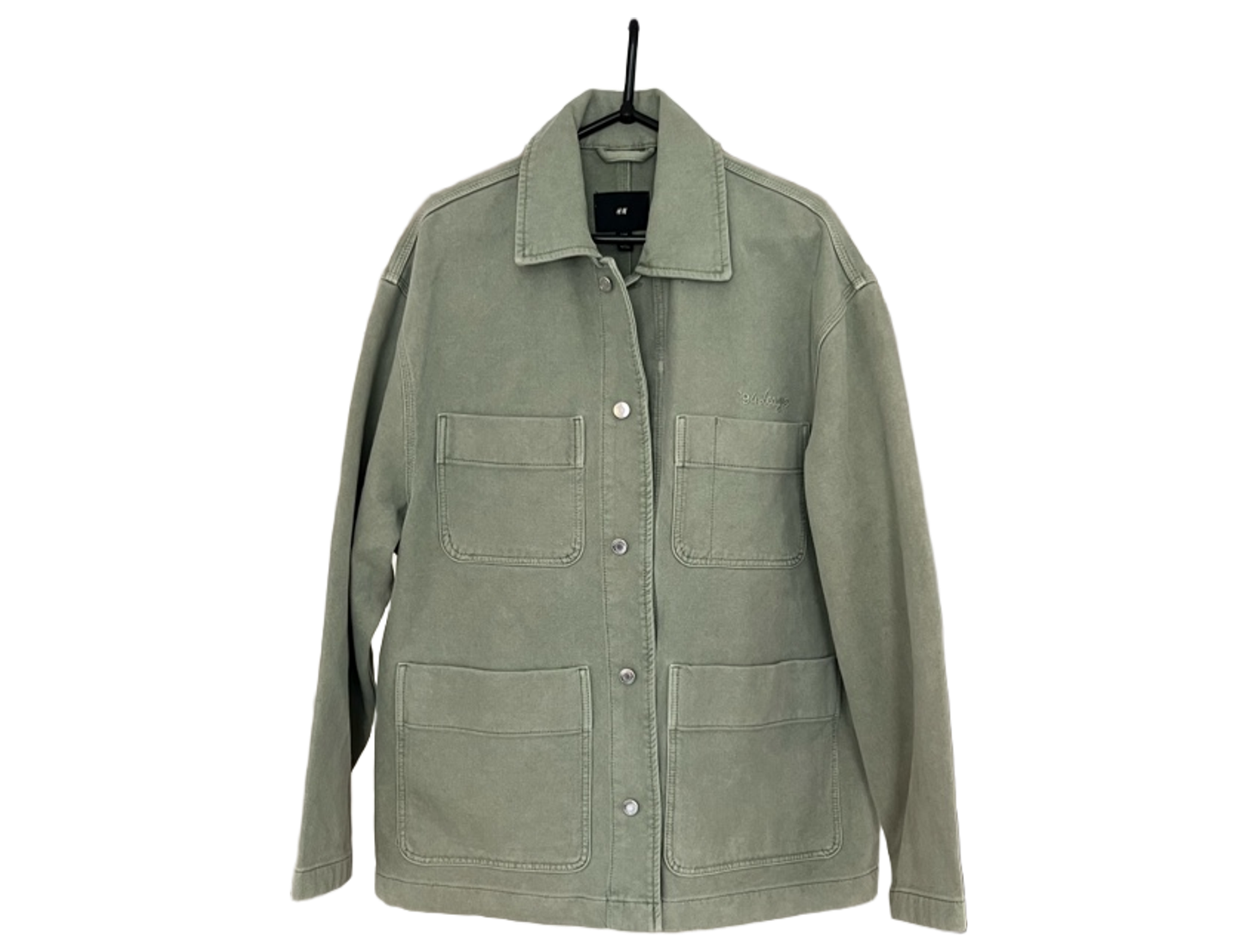 Miesten oversized khakin vihreä takki, neljä taskua, napit edessä. Koko on M, mutta menee koosta XL-XXL.