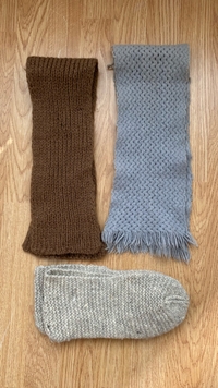 Kaksi huivia ja tossut.