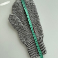 Harmaat käsintehdyt lapaset palmikkokuviolla. Kämmenen pituus n. 18 cm ja koko lapanen 26 cm. Materiaali 70 % villaa ja 30 % akryylia.